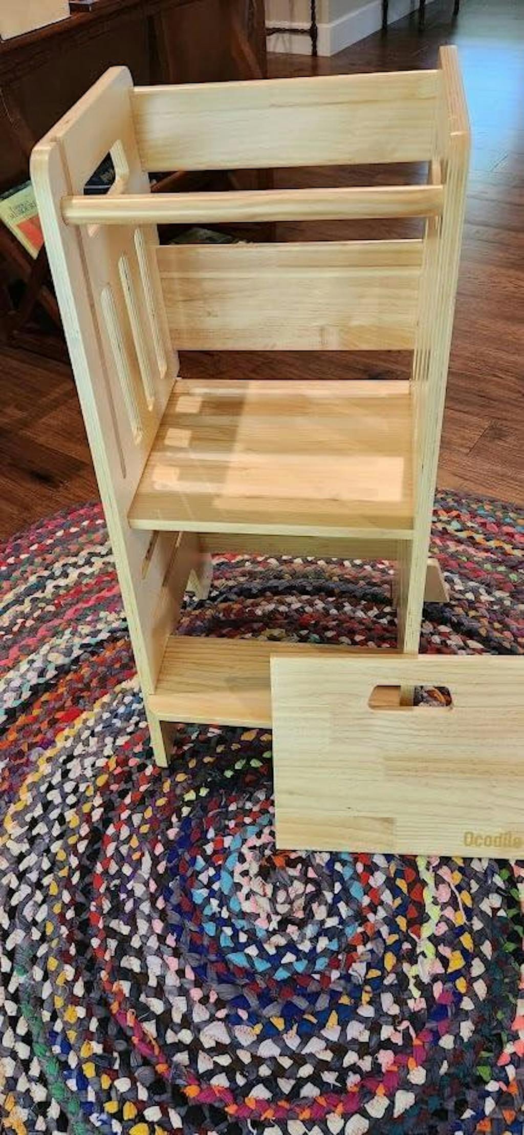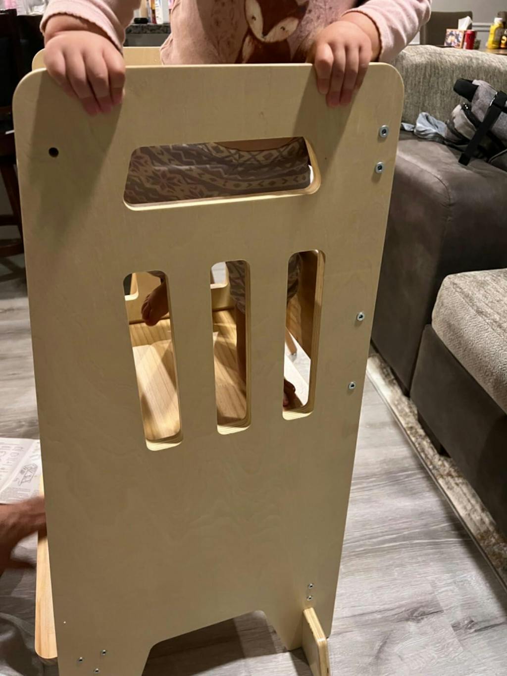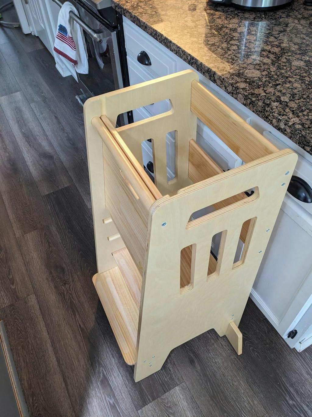 This toddler tower has been a great addition to our kitchen! It was incredibly easy to assemble, and the varnished finish gives it a stylish look that blends perfectly with our kitchen decor.